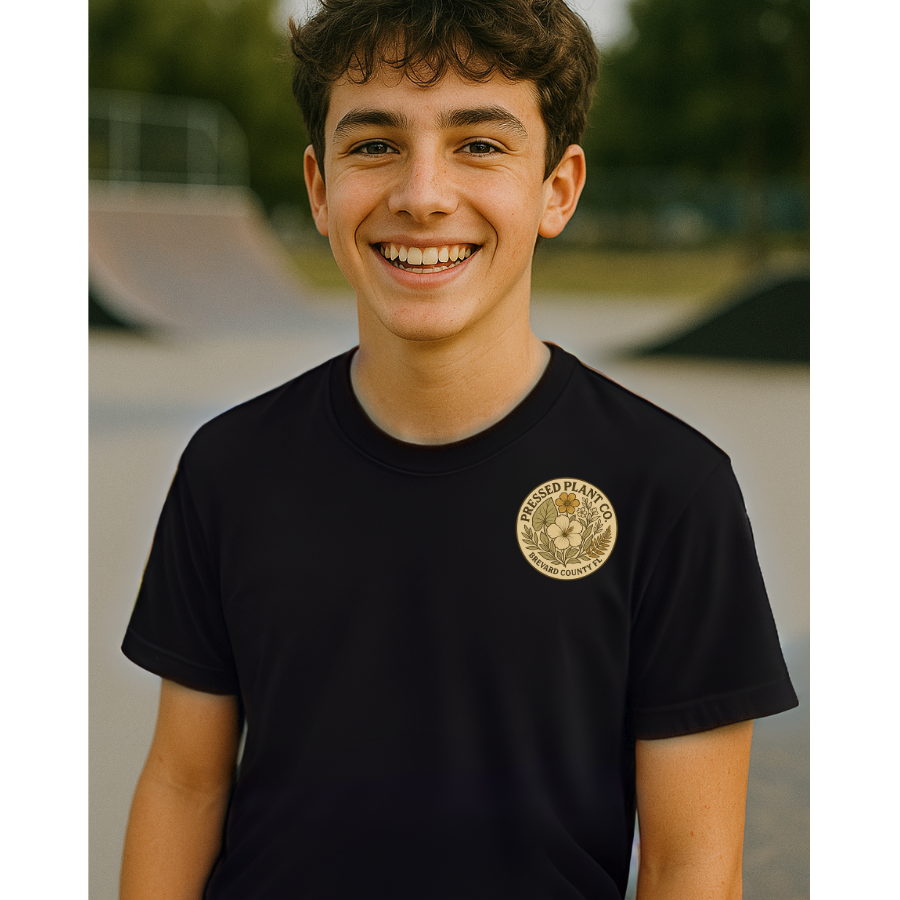 Capture the quiet beauty of Florida’s wetlands with this original Sandhill Crane design by Pressed Plant Co. Featuring two stately Sandhill Cranes surrounded by native grasses and delicate botanical details, this earthy illustration is a tribute to the graceful birds often seen strolling through Brevard County.